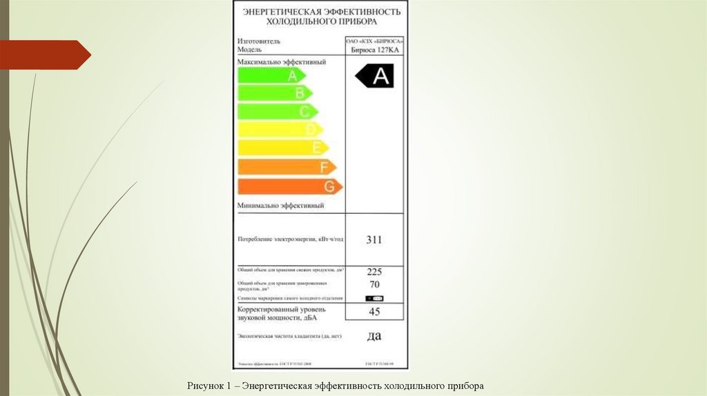 Рисунок 1 – Энергетическая эффективность холодильного прибора6.