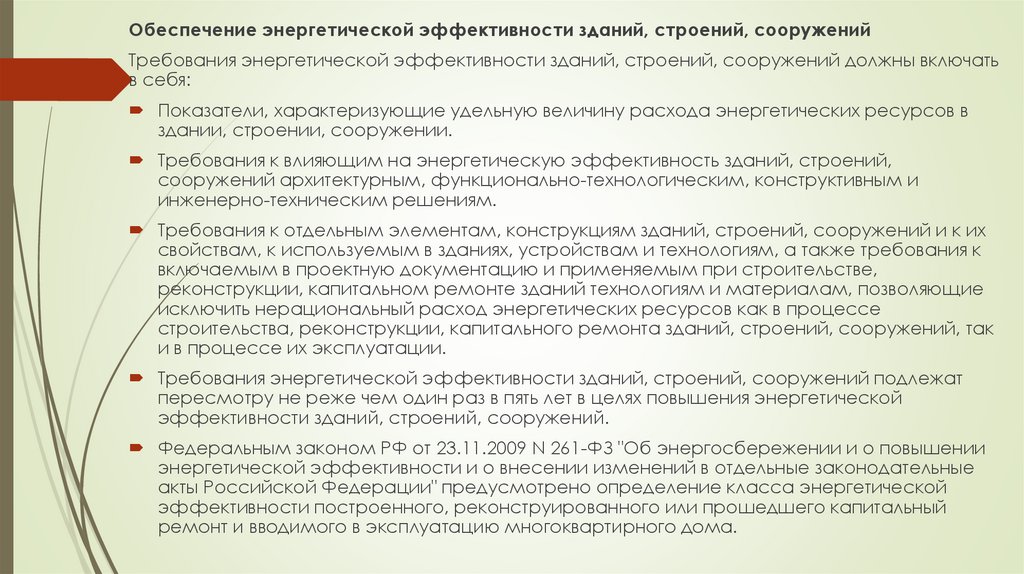 Обеспечение энергетической эффективности зданий, строений, сооруженийТребования энергетической эффективности зданий, строений, сооружений должны включать