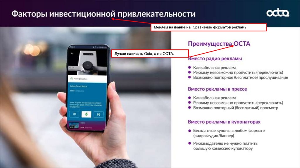 Меняем название на: Сравнение форматов рекламыЛучше написать Octa, а не OCTA.