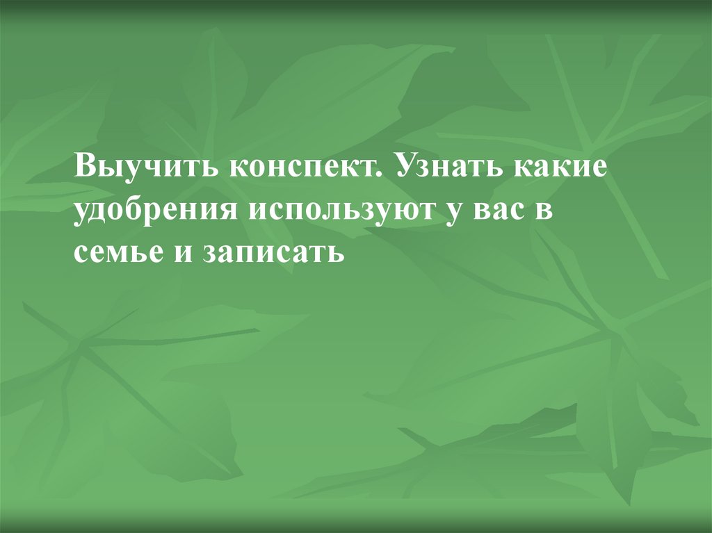 Выучить конспект. Узнать какиеудобрения используют у вас в