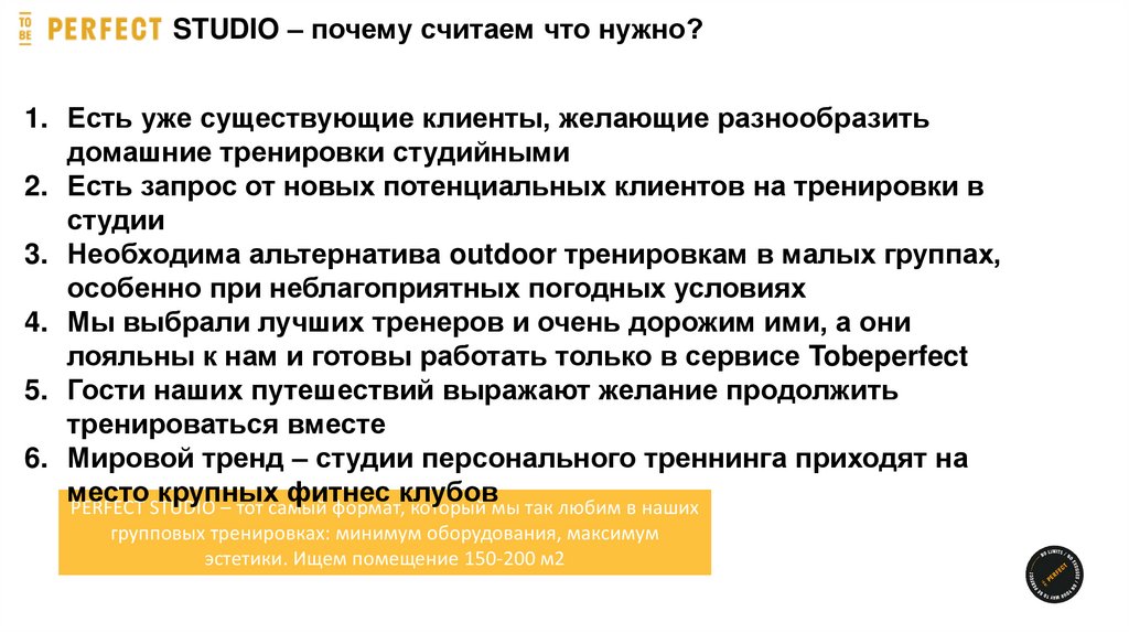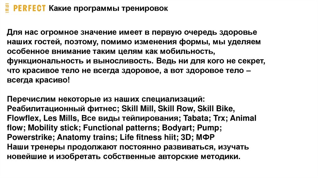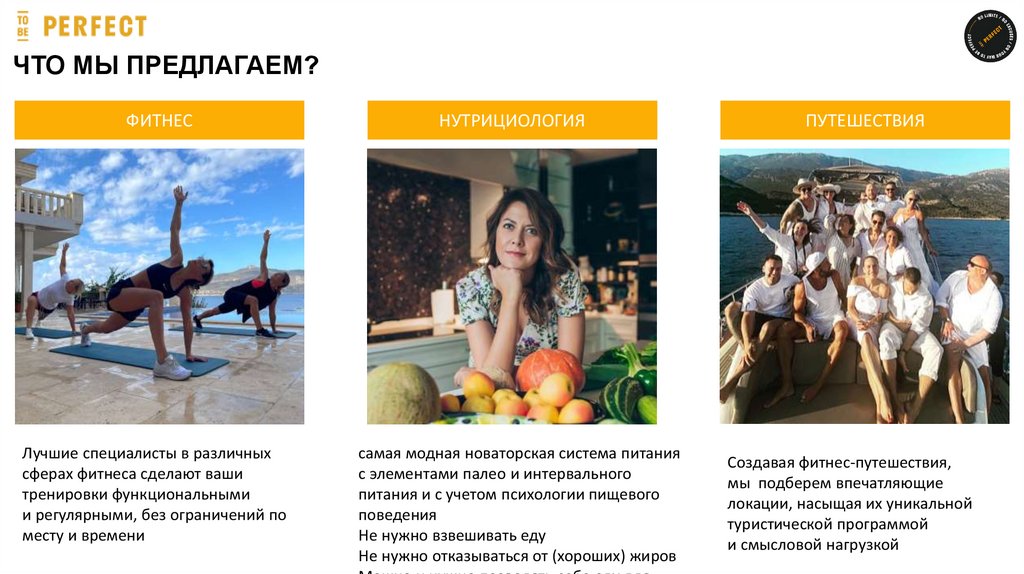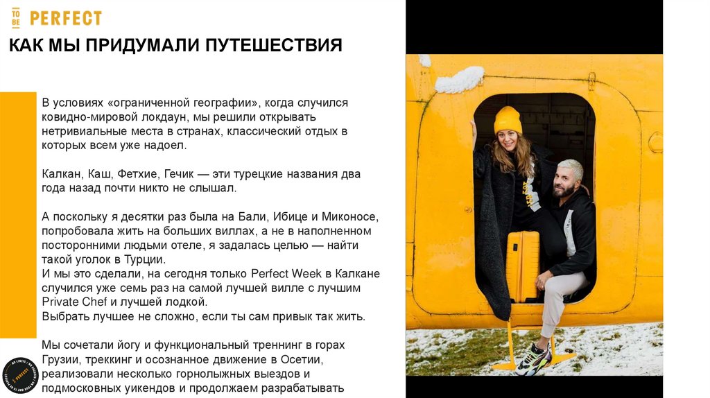 TO BE PERFECT — консьерж-сервис персональныхтренеров с доставкой на дом и запредельные фитнеспутешествия, которые изменят ваше отношение
