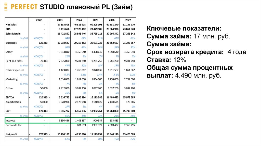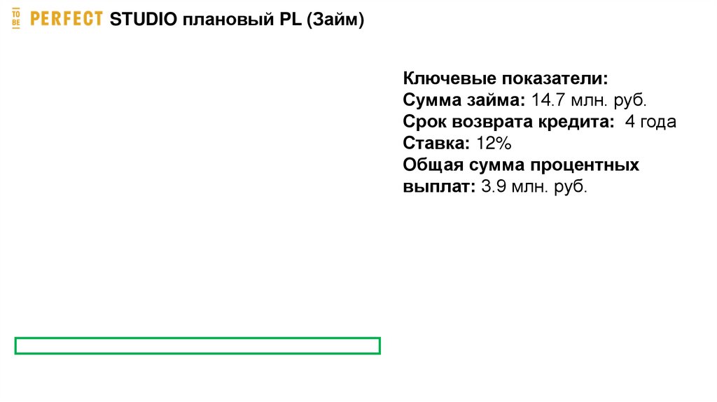 STUDIO плановый PL (Займ)Ключевые показатели: