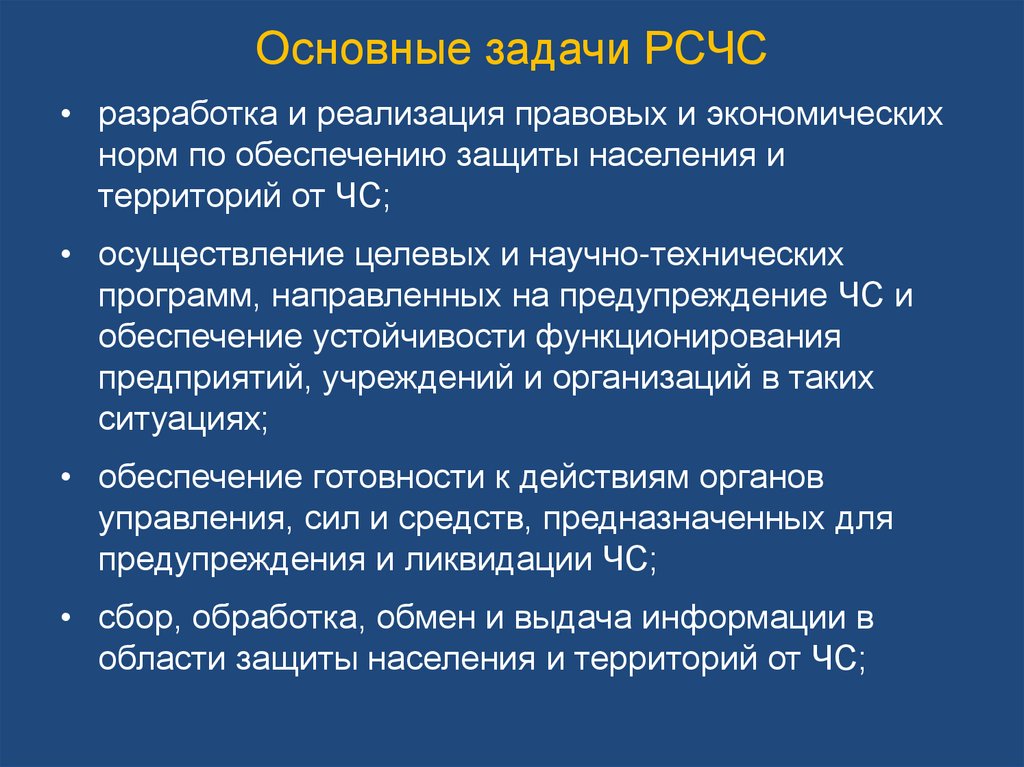 Основные задачи РСЧС• разработка и реализация правовых и экономических