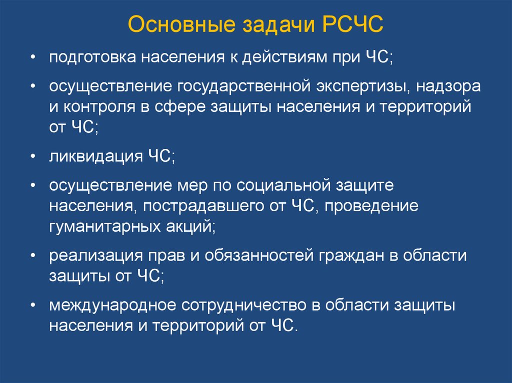 Основные задачи РСЧС• подготовка населения к действиям при ЧС;
