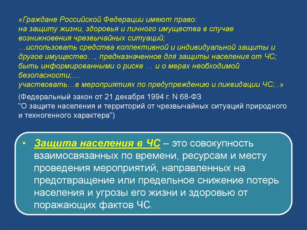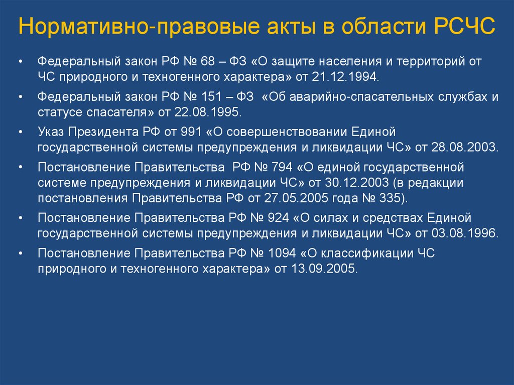 Нормативно-правовые акты в области РСЧСФедеральный закон РФ № 68 – ФЗ «О защите населения и территорий от