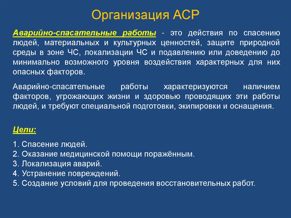 5. Основы организации и порядка проведения аварийноспасательных и других неотложных работ при ЧС.
