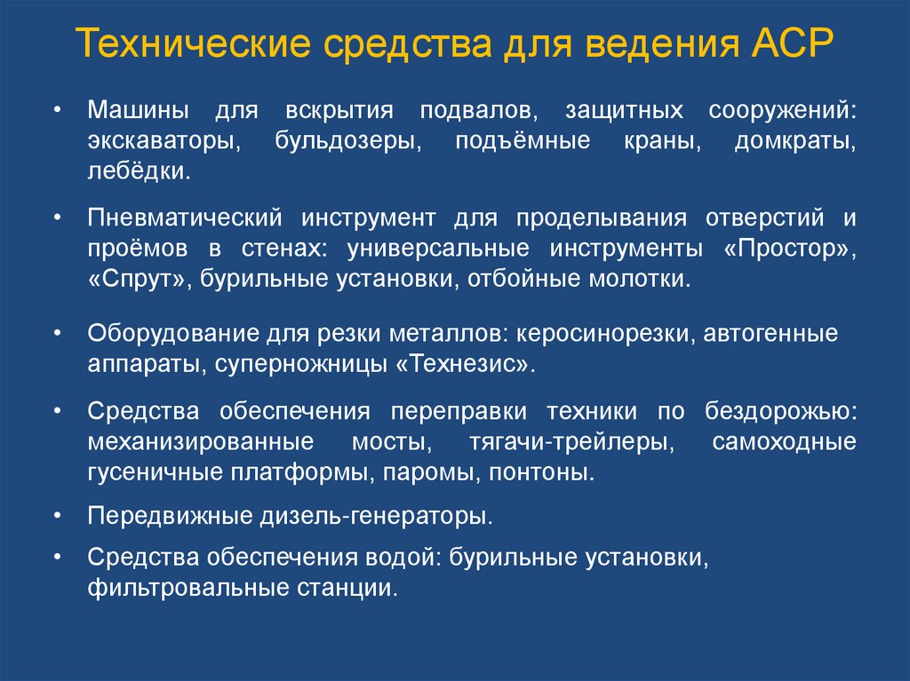 Технические средства для ведения АСР• Машины для вскрытия подвалов, защитных сооружений: