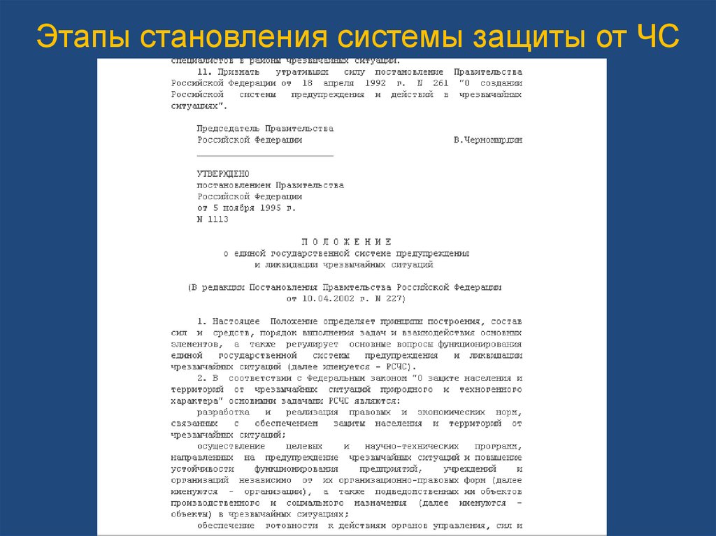 Этапы становления системы защиты от ЧСЗащита населения и территорий от ЧС природного и техногенного