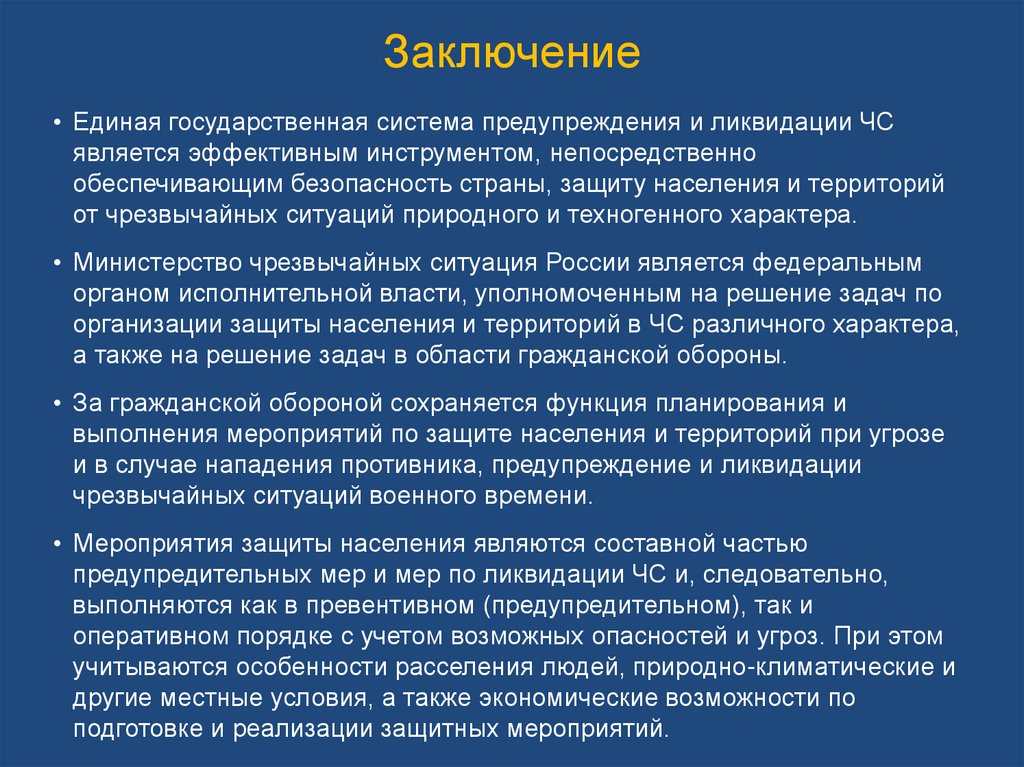 Заключение• Единая государственная система предупреждения и ликвидации ЧС
