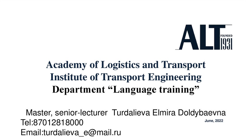 Academy of Logistics and Transport Institute of Transport Engineering Department “Language training”