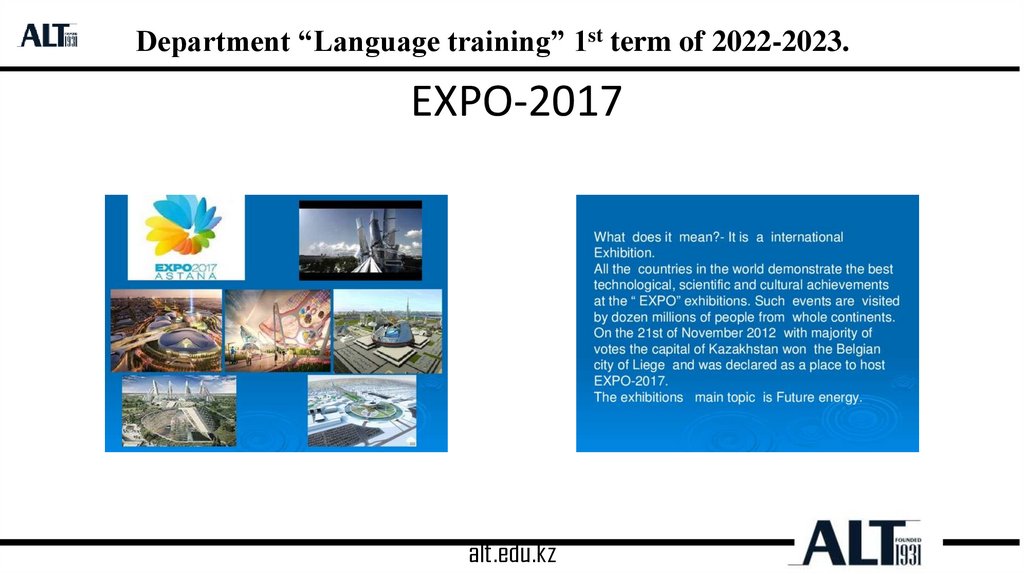 Department “Language training” 1st term of 2022-2023.EXPO-2017
