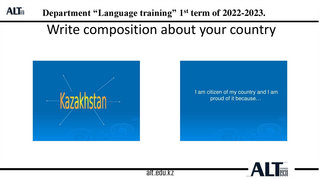 Department “Language training” 1st term of 2022-2023.Write composition about your country