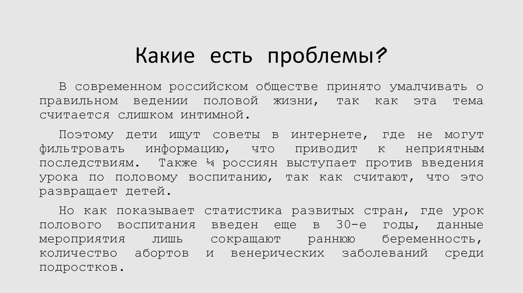 Какие есть проблемы?В современном российском обществе принято умалчивать о