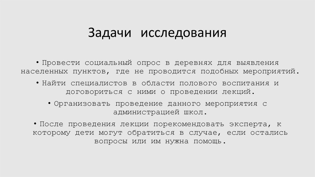 Задачи исследования• Провести социальный опрос в деревнях для выявления