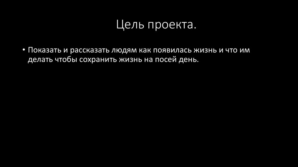 Цель проекта.• Показать и рассказать людям как появилась жизнь и что им
