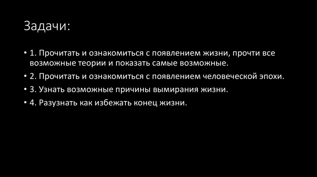Задачи:• 1. Прочитать и ознакомиться с появлением жизни, прочти все