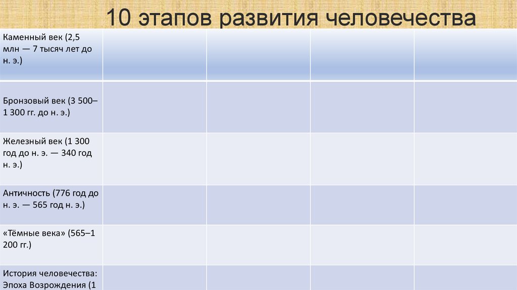 10 этапов развития человечестваКаменный век (2,5