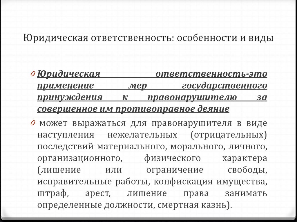 Юридическая ответственность: особенности и виды0 Юридическая