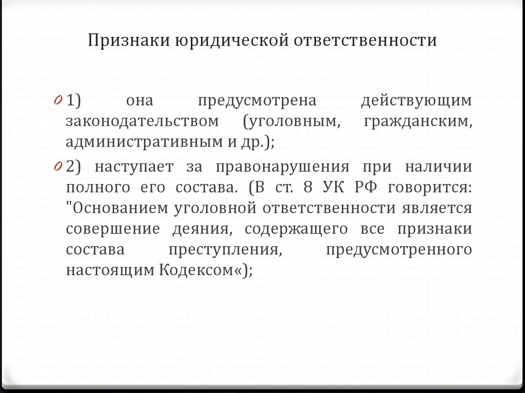 Признаки юридической ответственности0 1)