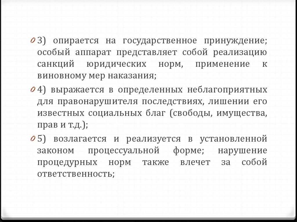 0 3) опирается на государственное принуждение;особый аппарат представляет собой реализацию