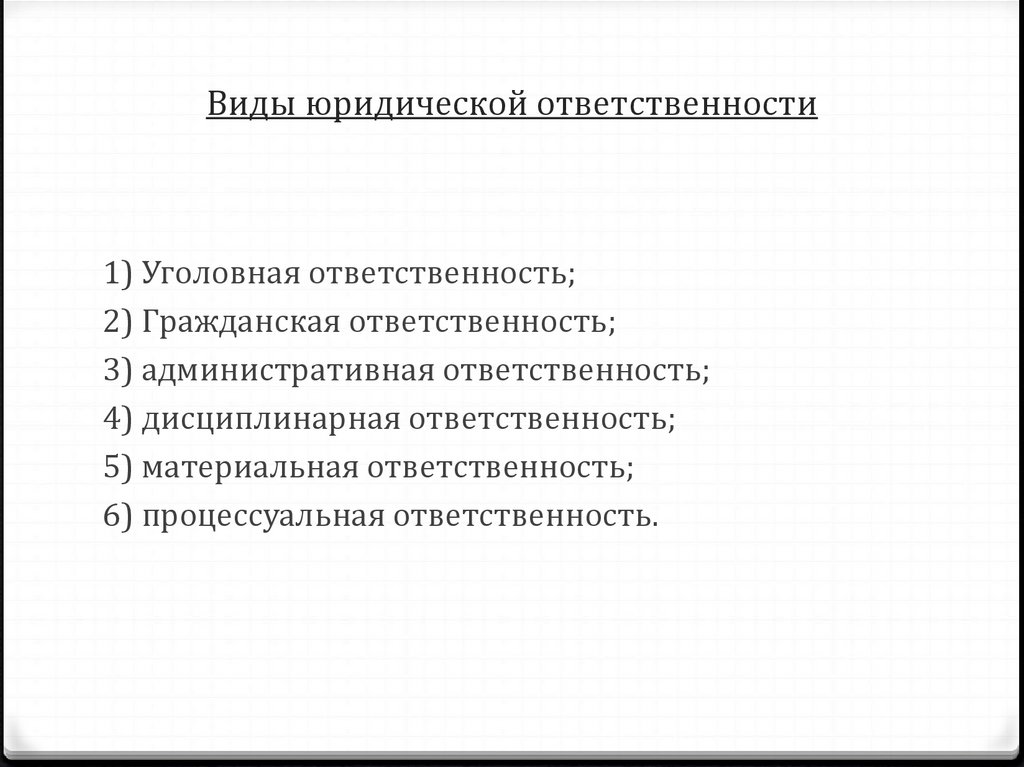 Виды юридической ответственности1) Уголовная ответственность;