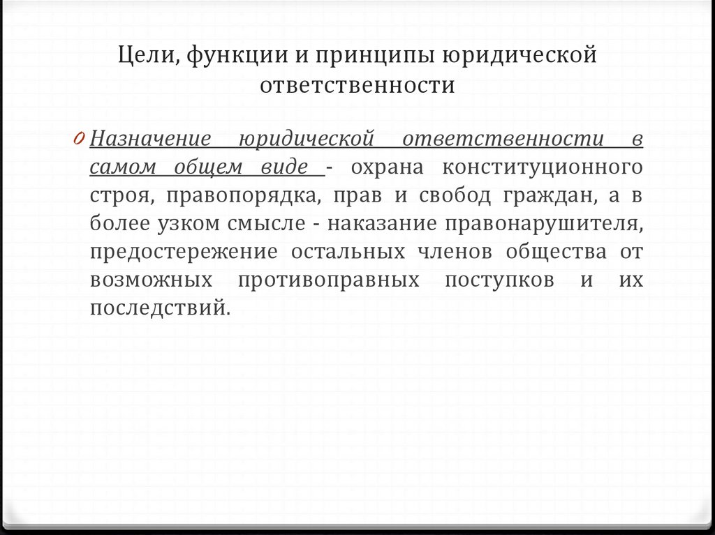 Цели, функции и принципы юридическойответственности