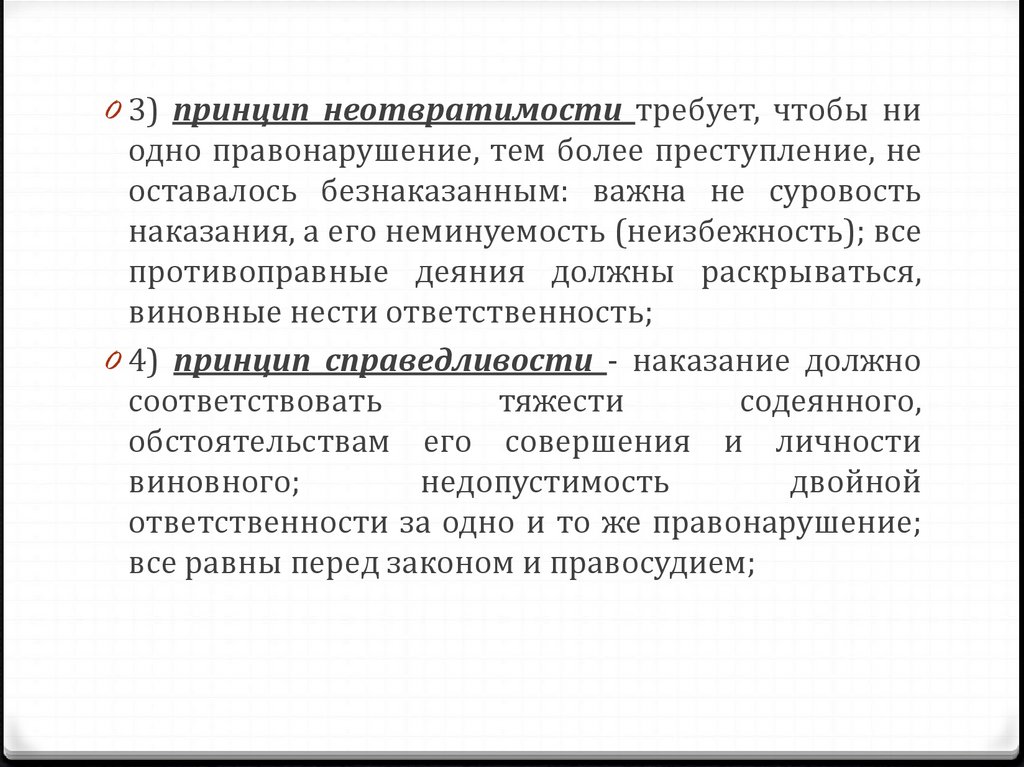 0 4) принцип справедливости - наказание должно