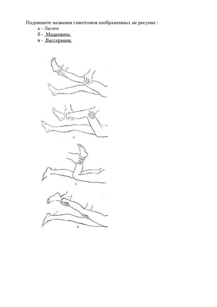 Подпишите названия симптомов изображенных на рисунке :а - Ласего