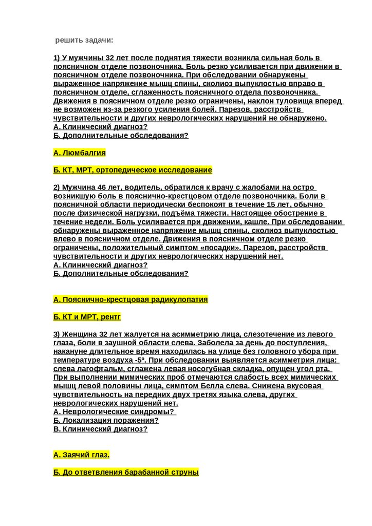 решить задачи:1) У мужчины 32 лет после поднятия тяжести возникла сильная боль в