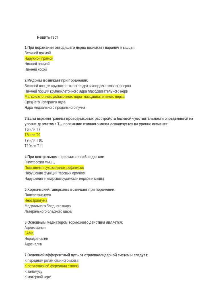 Решить тест1.При поражении отводящего нерва возникает паралич мышцы: