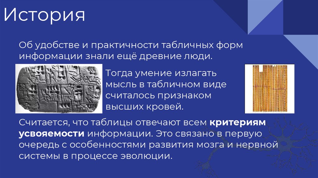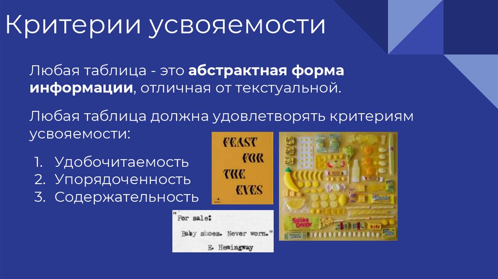 Критерии усвояемостиЛюбая таблица - это абстрактная форма