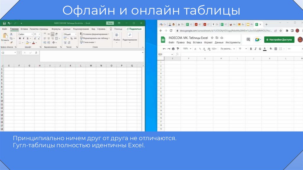 Офлайн и онлайн таблицыПринципиально ничем друг от друга не отличаются.