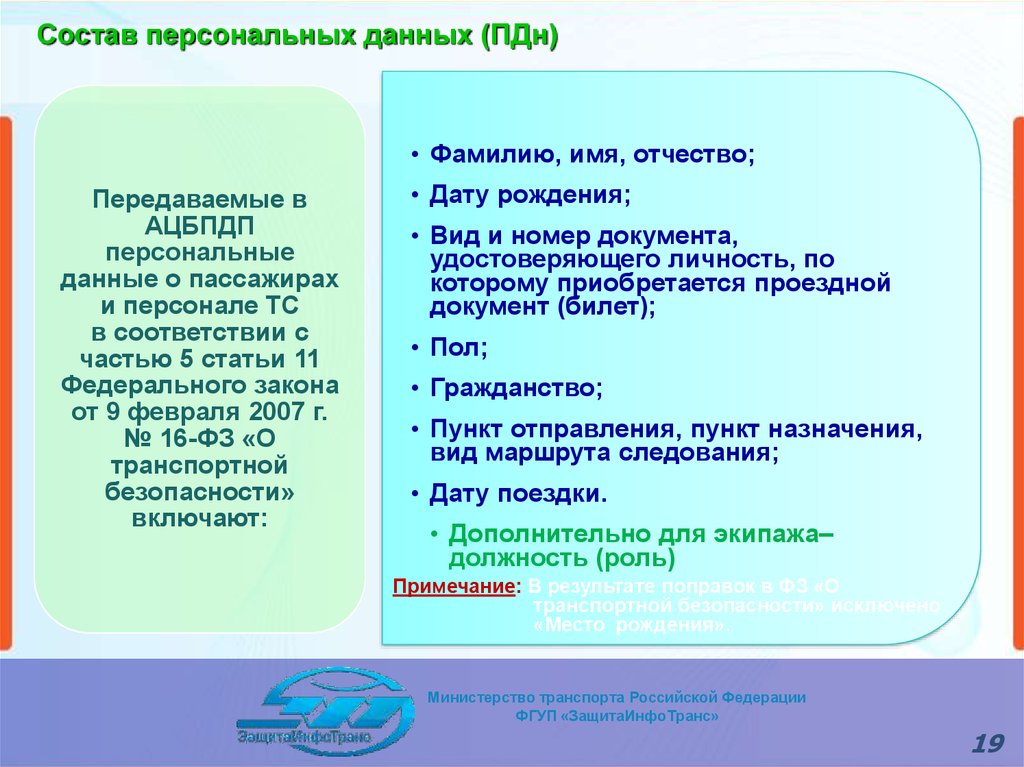 Состав персональных данных (ПДн)• Фамилию, имя, отчество;