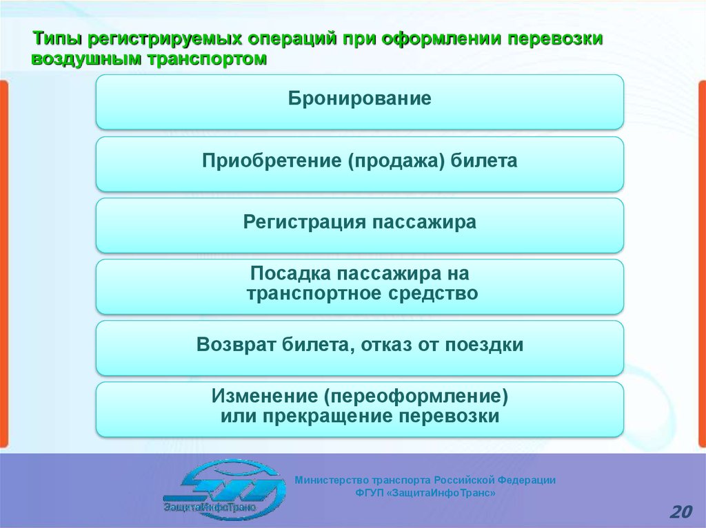 Типы регистрируемых операций при оформлении перевозкивоздушным транспортом