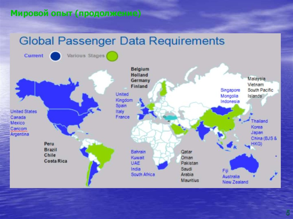 Мировой опыт (продолжение)•Мировой опыт внедрения систем сбора API-PNR данных
