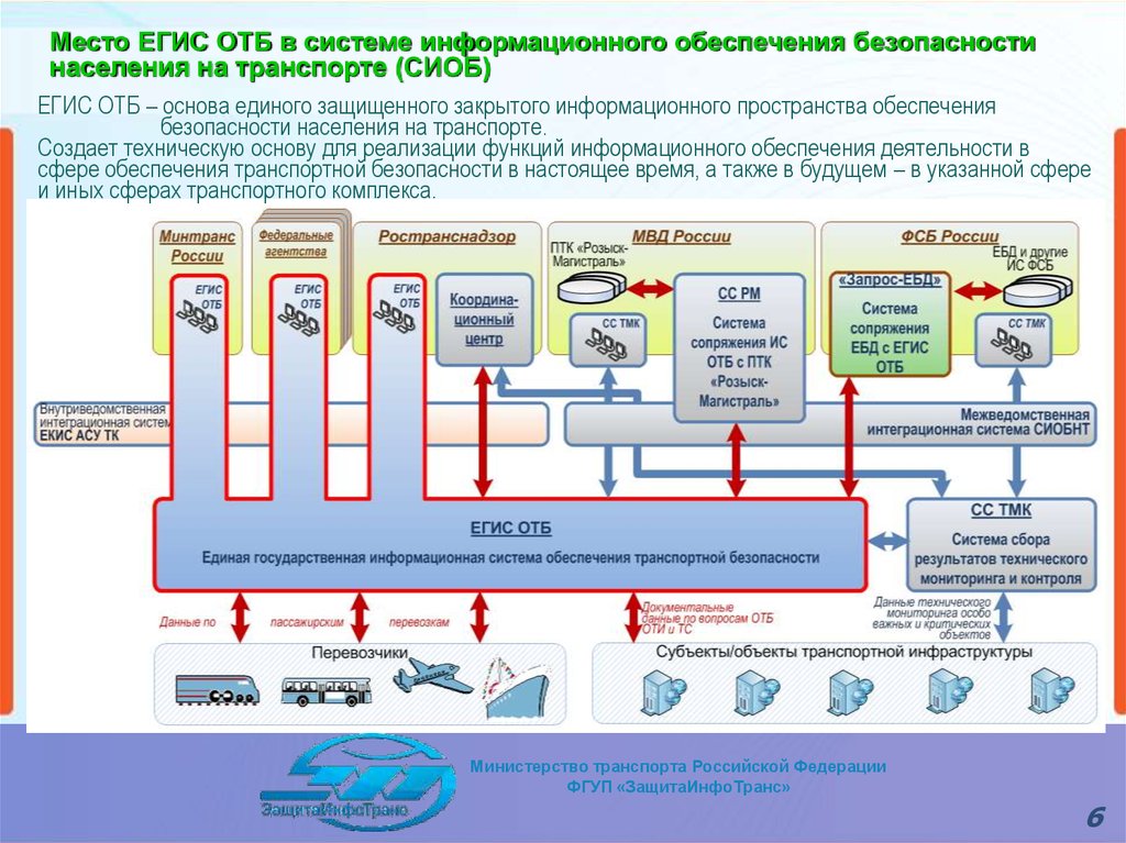 Место ЕГИС ОТБ в системе информационного обеспечения безопасностинаселения на транспорте (СИОБ)