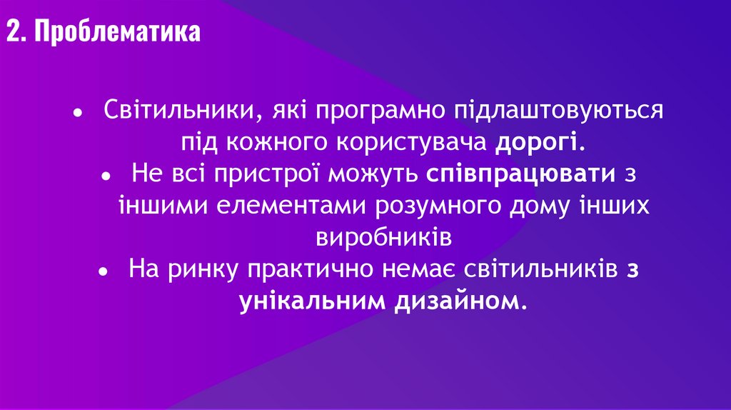 2. ПроблематикаСвітильники, які програмно підлаштовуються
