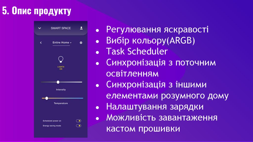 5. Опис продуктуРегулювання яскравості