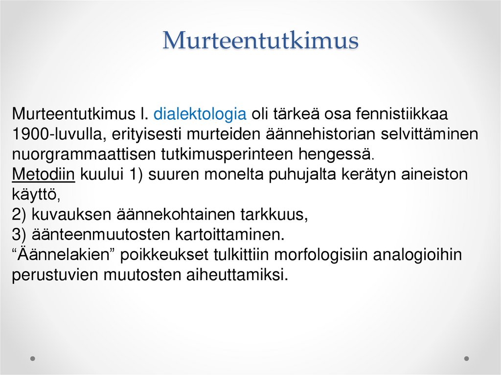 MurteentutkimusMurteentutkimus l. dialektologia oli tärkeä osa fennistiikkaa