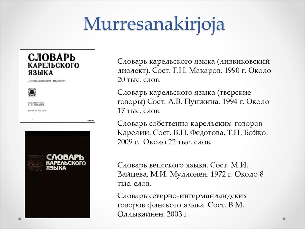 Karjalan kielen sanakirja6-osainen teos on ilmestynyt 1968 – 2005. ,