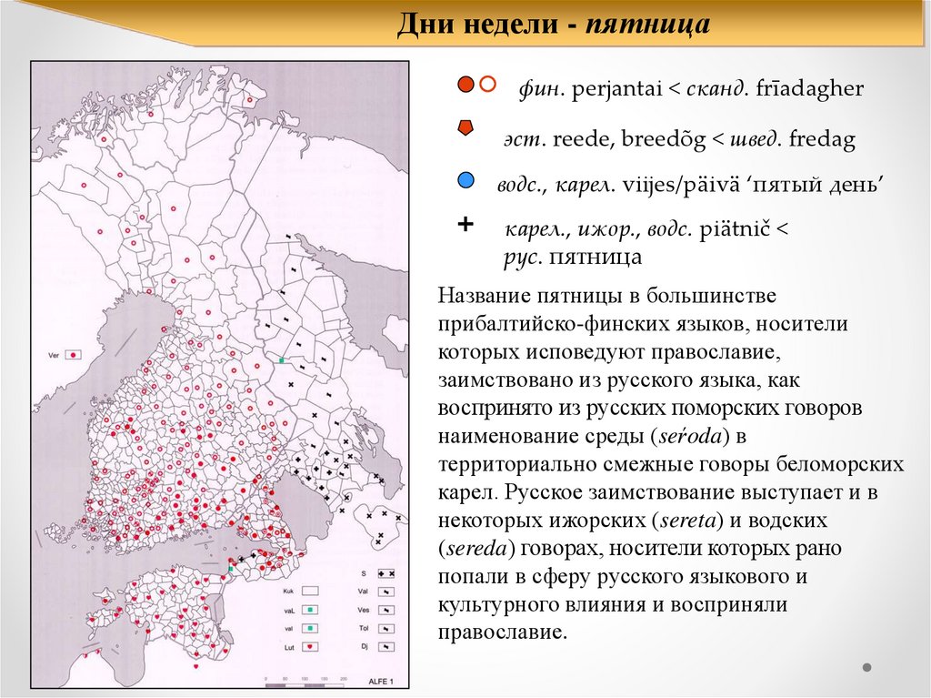 Дни недели - пятницафин. perjantai < сканд. frīadagher