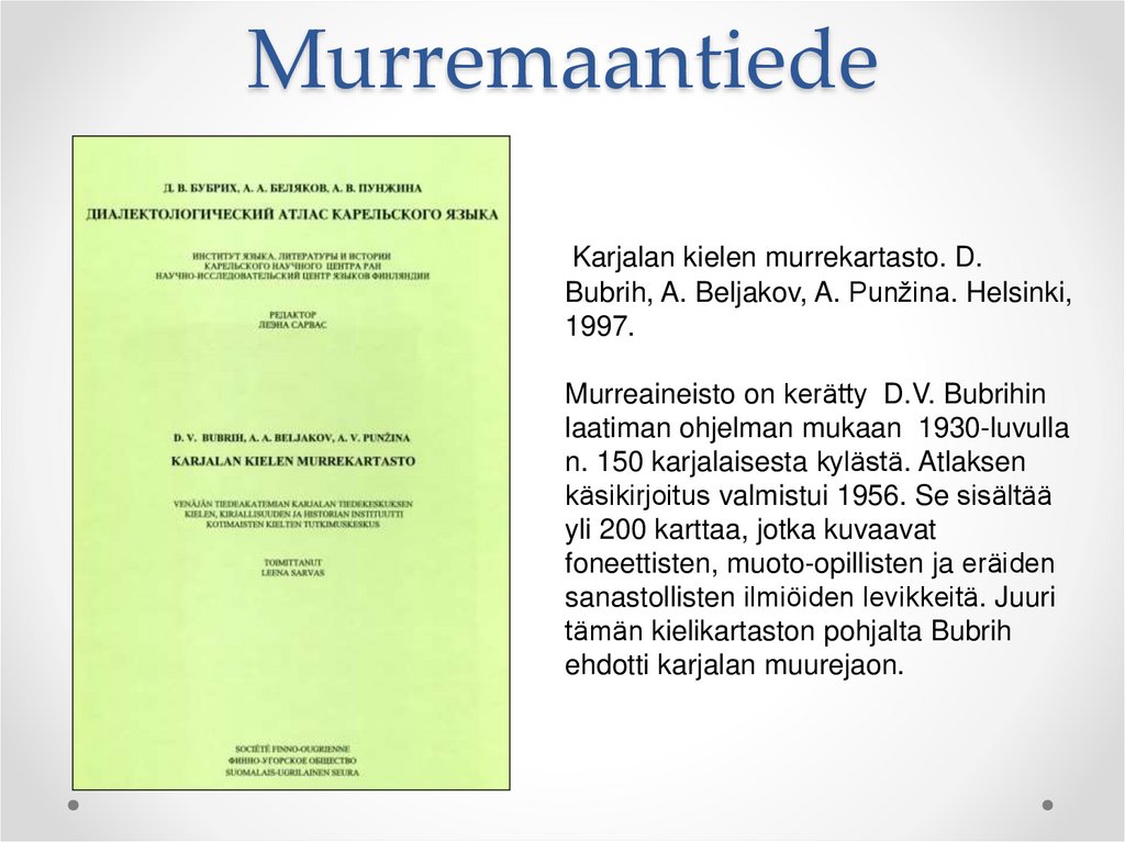 MurremaantiedeKarjalan kielen murrekartasto. D.