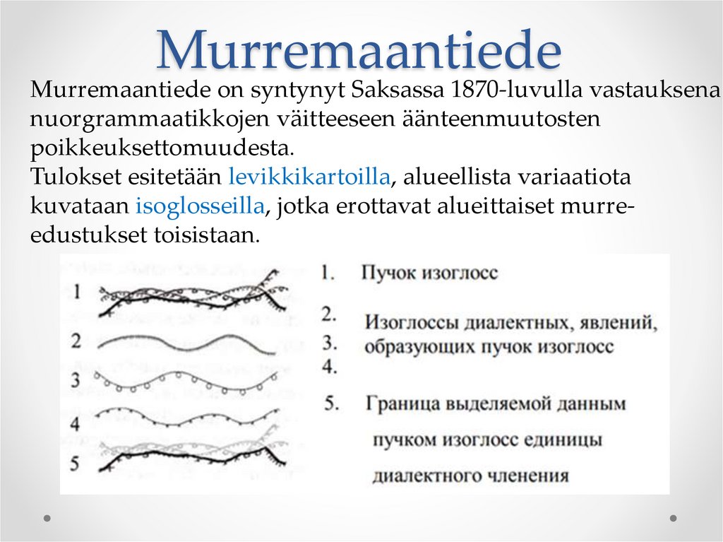 kielipiirteitä ja niiden varianttien leviämistä. Murteentutkimus oli kiinnostunut