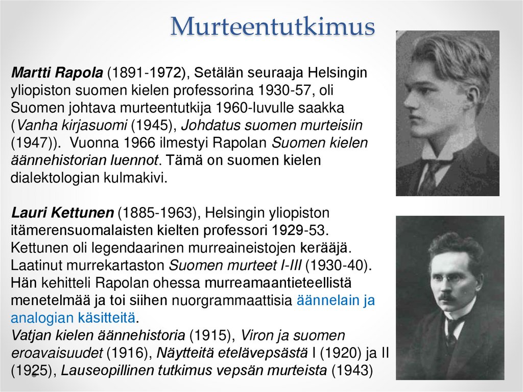 1900-luvulla, erityisesti murteiden äännehistorian selvittäminen