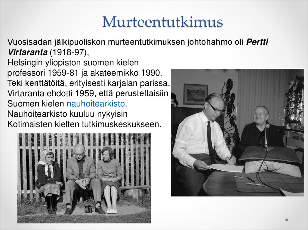 MurteentutkimusVuosisadan jälkipuoliskon murteentutkimuksen johtohahmo oli Pertti