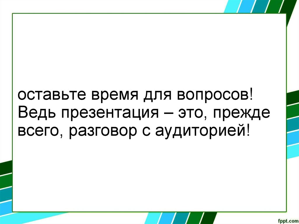оставьте время для вопросов!Ведь презентация – это, прежде