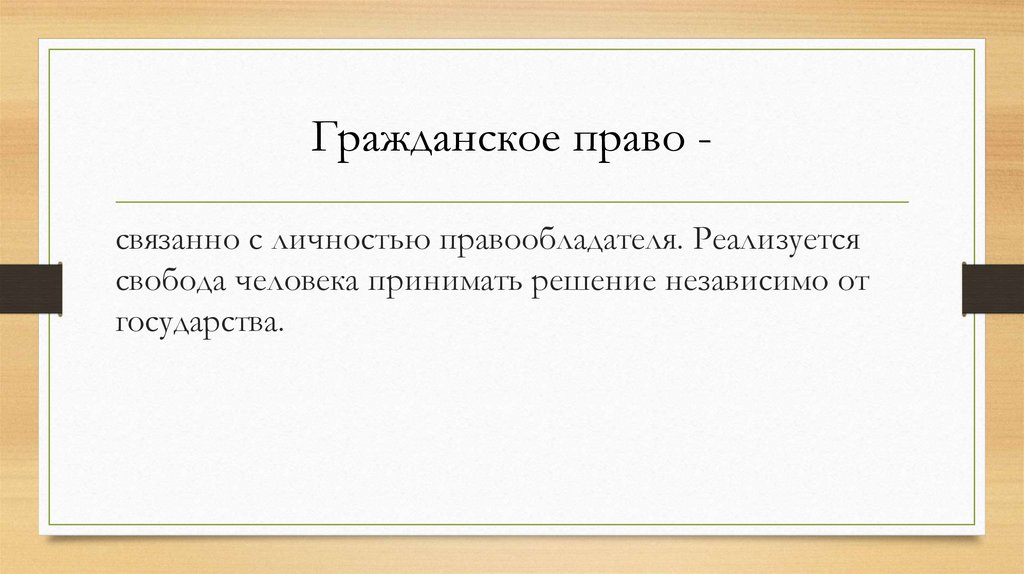 Гражданское право связанно с личностью правообладателя. Реализуетсясвобода человека принимать решение независимо от