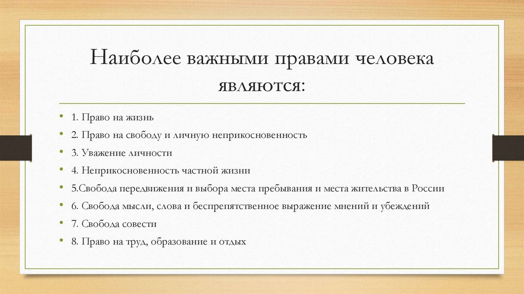 Наиболее важными правами человекаявляются: