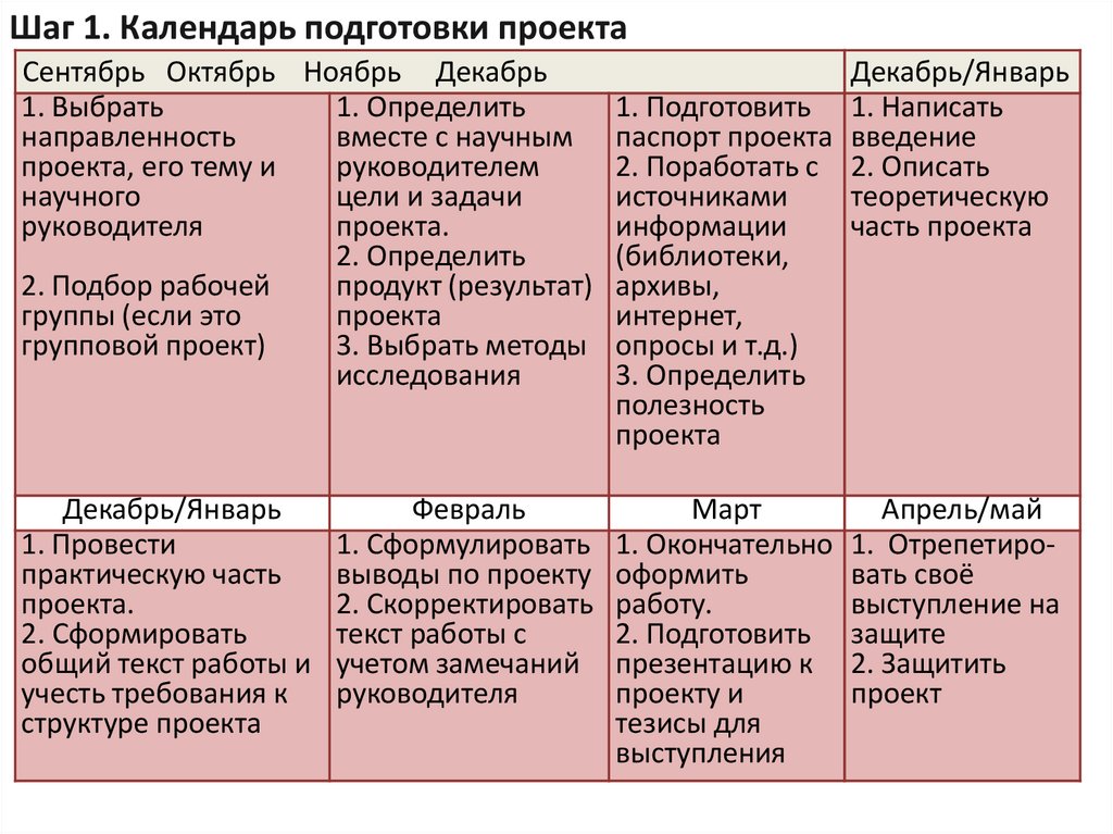 Шаг 1. Календарь подготовки проектаСентябрь Октябрь Ноябрь Декабрь