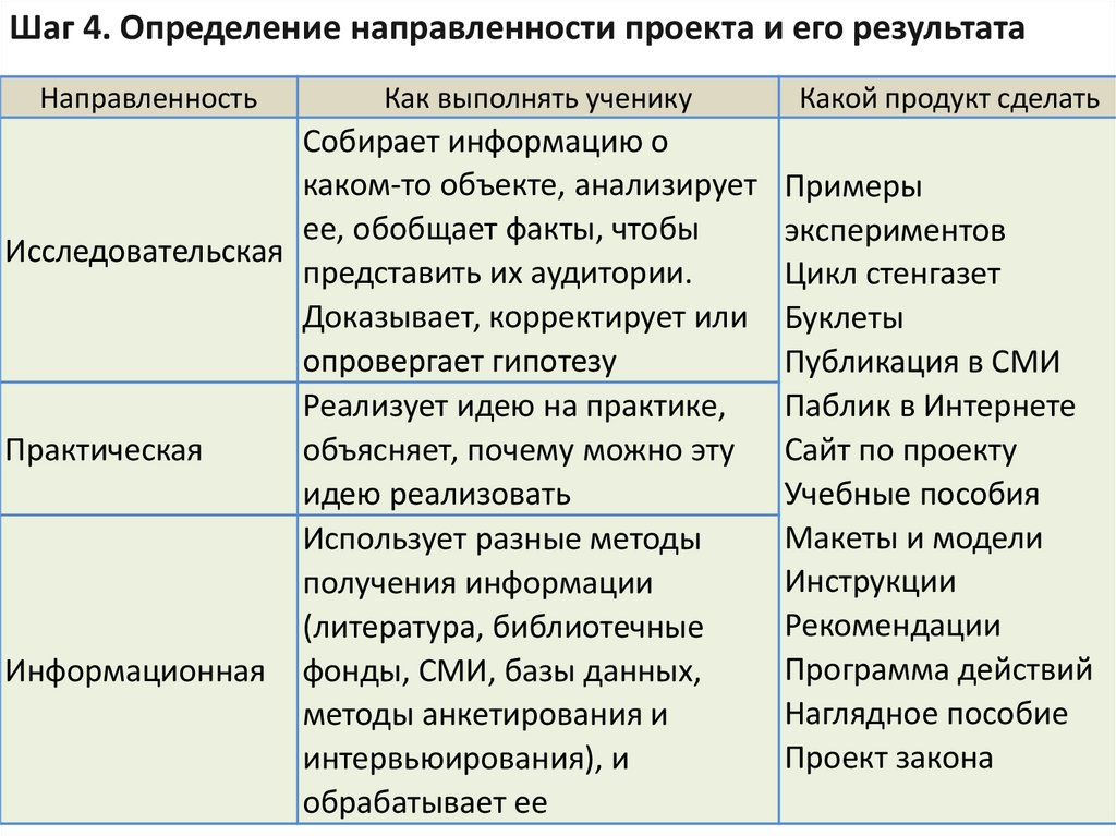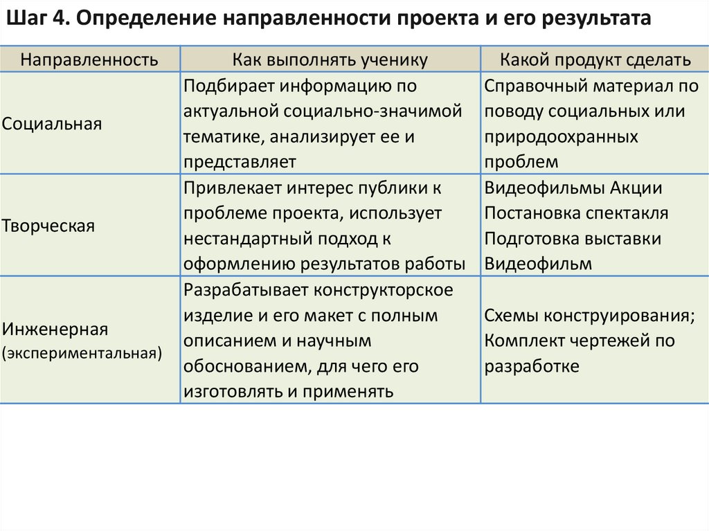 Шаг 4. Определение направленности проекта и его результатаНаправленность